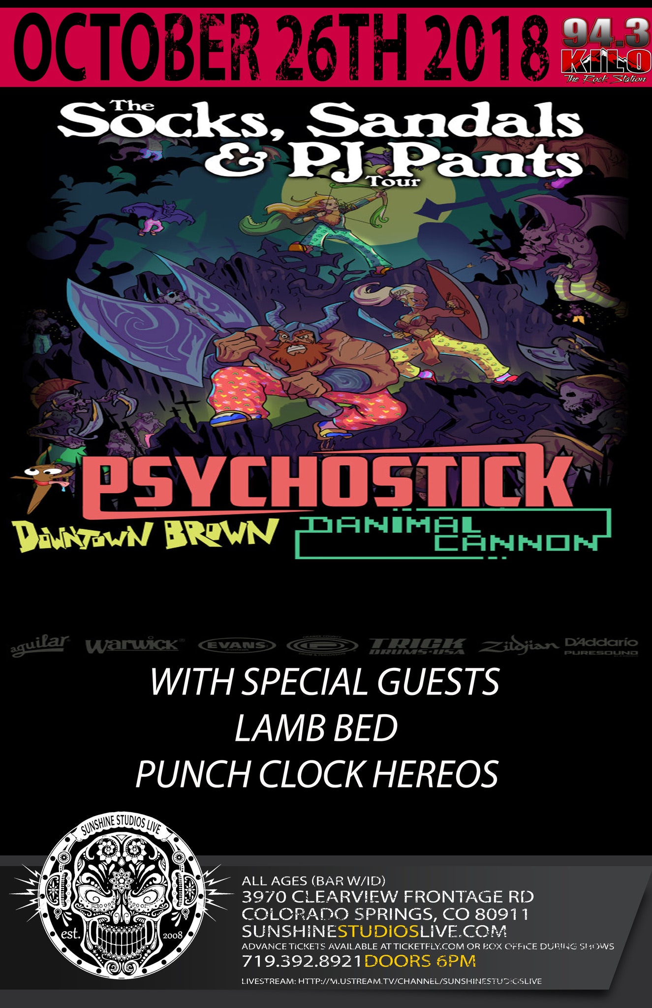 Lineup: PSYCHOSTICK, Downtown Brown, Danimal Cannon, Lamb Bed, & Punch Clock Heroes