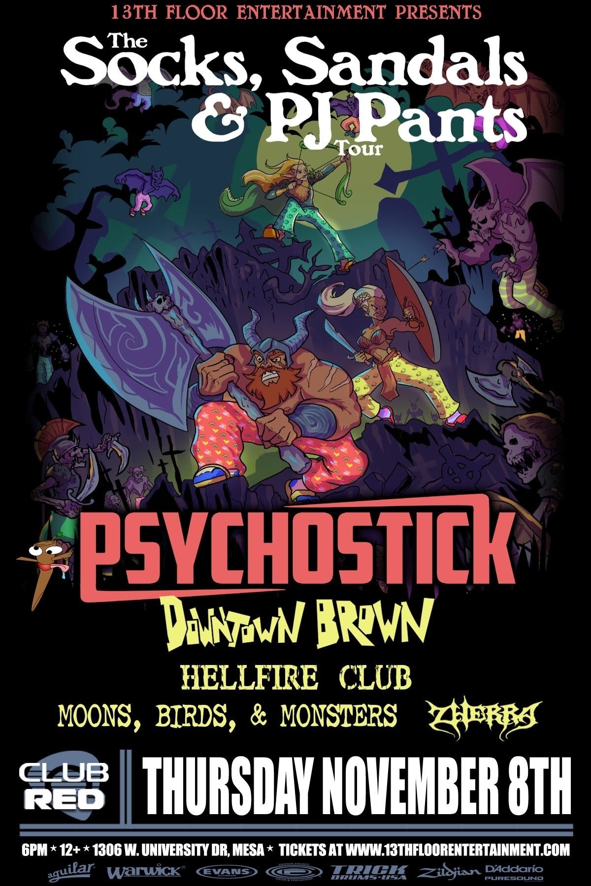 Lineup: PSYCHOSTICK, Downtown Brown, Hellfire Club, Moons, Birds & Monsters, & Zherra